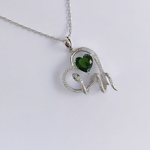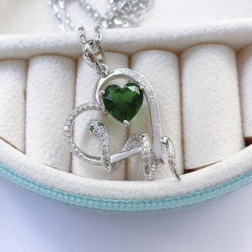 Collar de víbora verde, con grabado «I love you forever». Hecho en plata.